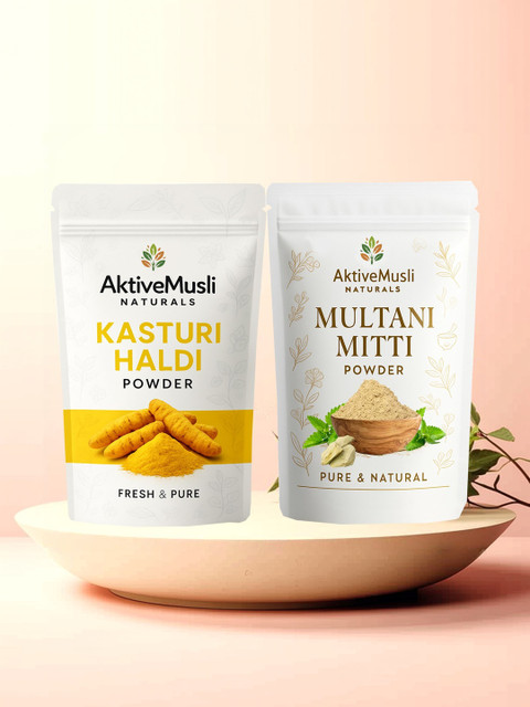 AKTIVEMUSLI Set Of 2 Multani Mitti & Kasturi Haldi Powder – 100 g Each