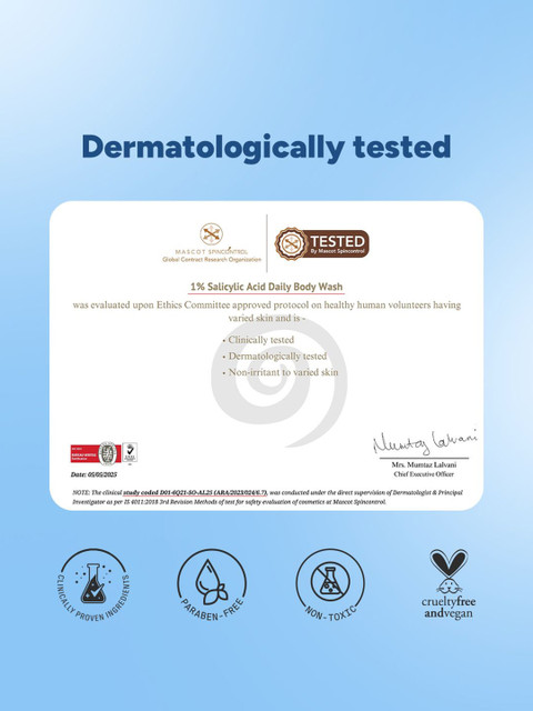 Cleanses &amp, exfoliates infused with 1% salicylic acidBHA that deeply cleanses and exfoliates skin to remove dead cellsReduces body acne: our daily body wash reduces body acne by penetrating deep into pores and breaking down dirt and grimeIt not only treats existing acne but also keeps future comedones at bay