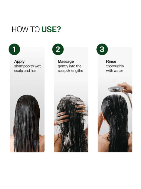 Rinse your hair thoroughly. Apply the required amount of shampoo on your scalp and along the length of your hair Massage with your fingers or a wide-mouth comb Wash your hair and then style as usual