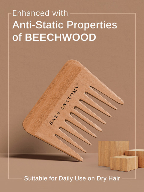 The Bare Anatomy Wooden Comb is honestly such a satisfying upgrade from regular plastic combs. It feels really gentle on the scalp, and the smooth wooden teeth glide through hair without pulling or causing breakage. I love that it reduces frizz and static, and even gives a slight natural volume by distributing oils evenly. The beechwood quality feels premium, and the comb is compact enough to carry anywhere. Overall, it’s a great choice if you want a natural, eco-friendly, and comfortable comb that keeps your hair healthy and tangle-free.