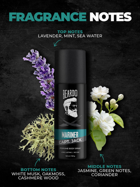 BEARDO Set of 2 Mariner Long Lasting Perfume Body Spray 120 ml(100 g) each