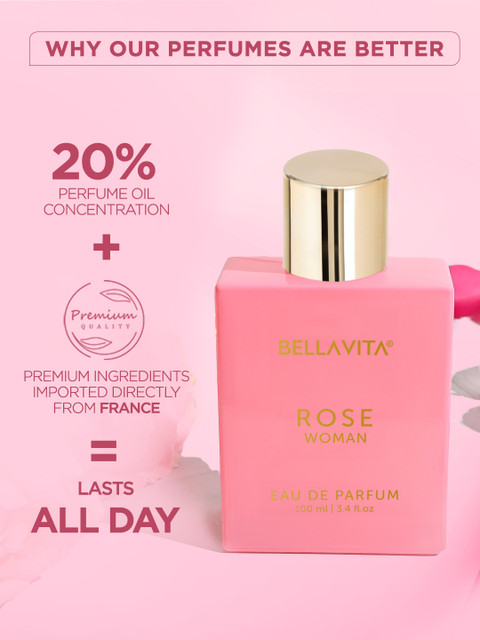 BellaVita Rose is a floral-centric women’s perfume that captures a romantic and uplifting fragrance profile built around the timeless scent of rose. It opens with a refreshing bouquet that combines delicate rose petals with soft fruity and floral hints like jasmine and peach, creating a fresh and cheerful first impression great for daytime wear and casual occasions. As the scent develops, the floral heart becomes more pronounced but stays gentle and elegant rather than overwhelming. The base layers add warmth and depth through subtly sweet and sensual musky and amber tones, making the overall composition well-balanced and long-lasting on skin. This blend gives the perfume a soft, feminine, and romantic character ideal for everyday elegance or gifting.
