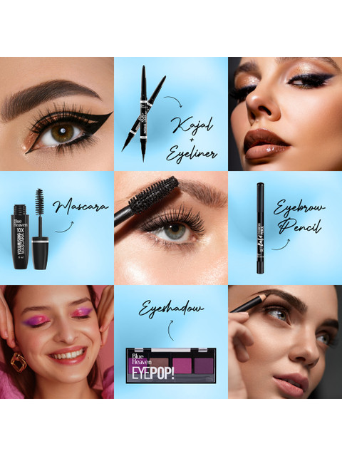 This Blue Heaven makeup collection is a perfect combo for beginners and makeup lovers. The products include foundation, mascara, eyeliner, lipstick, eyeshadow palette, blush, and highlighter — everything needed for a complete look. The Blue Heaven Hyperstay Foundation gives a smooth matte finish and stays long without feeling heavy. The EyePop Eyeshadow Palette has beautiful shades that blend easily and suit both daily and party looks. The mascara and eyeliner are smudge-proof and make the eyes stand out beautifully. Lipsticks are richly pigmented, long-lasting, and glide smoothly on the lips. The blush and highlighter add a natural glow, perfect for enhancing facial features. Packaging is stylish and travel-friendly. Overall, the quality is impressive for its price range, making it a great affordable option for students or those who love experimenting with makeup. It’s an ideal mix of beauty, quality, and budget-friendliness.