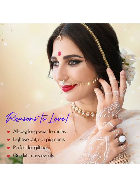 Kajal/Eyeliner: Along the edge of the eyelid draw a line with the help of the felt tip eyeliner and apply kajal in the water line.Eyebrow: Place your eyebrow pencil vertically over the eyebrow and start from the inner corner of the eye, use soft and feature like strokes from the inner corner of the eyebrow till the arch, to outline them.Mascara: Holding it horizontally, go from bottom to tips of upper lashes. For lower lashes, hold it vertical and coat lashes in quick, downward strokes.Lip Color: Unscrew the cap and remove excess product. Do a full swipe on each lip and wait for 10 sec for it to dry.Foundation: Using your fingertips, massage lightly until absorbed or gently blend outward with brush/blender for an even finish.Compact: Use the provided puff to pick up a small amount of matte compact powder.Gently press and blend onto your face for even, natural coverage. Reapply as needed throughout the day to maintain a shine-free, matte finish.Lipstick: Unscrew the cap and remove the excess product. Do a full swipe on each lip, wait for 10 seconds for it to dry.Eyeshadow: Apply a light matte shade on your eyelids and blend it well into the inner corners for a brightening effect.Blush: Apply blush onto the apples of the cheeks, starting slightly lower and following a curved, U-shaped motion along the cheekbones and towards the templesSindoor: Apply along hair parting