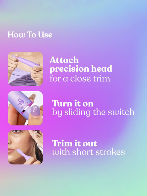 | How-to-Use | Install battery: Hold top and bottom of unit and pull apart to insert batterySlide switch to turn the trimmer ONUse on clean, dry skin. Pull skin tight and move in small, circular motions |
