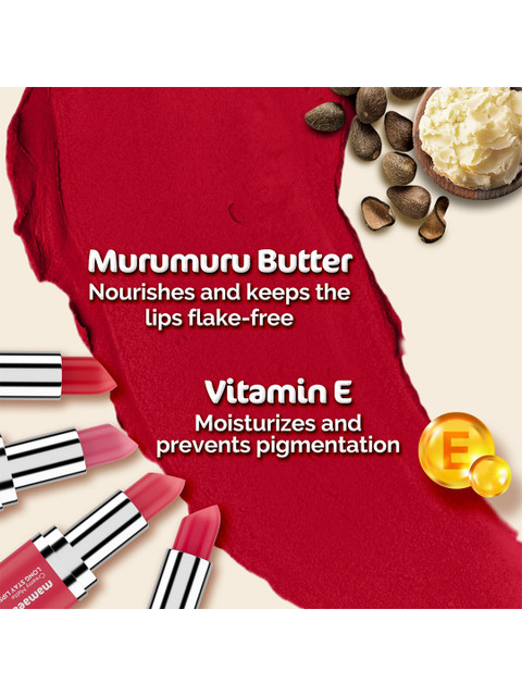 Mamaearth lipstick is smooth creamy matte or soft matte finishes, comfortable, non drying formulas enriched with nourishing ingredients like murmura butterand vitamin E ,long lasting wear.The colour are vibrant and colour payoff in one stroke.free from parabens ,mineral oil and harmful chemical s .suitable for everyday wear and for various indian skin tone