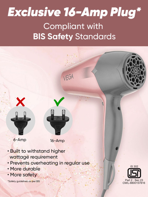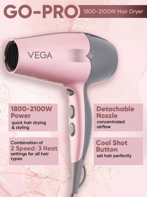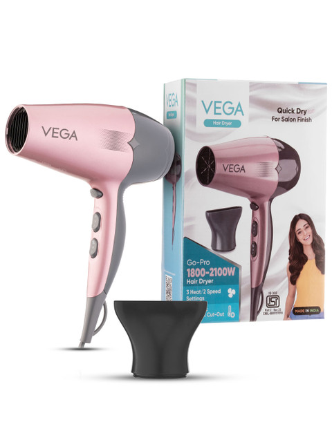 I’ve been using the Vega hair dryer for a while now, and it works really well. It has both hot and cool settings, which makes it convenient for everyday use as well as styling. The hot air dries hair quickly, and the cool setting is helpful for setting the style and reducing heat damage. It’s easy to handle, lightweight, and gives good results without much effort. Overall, it’s a reliable and value-for-money hair dryer for regular use.