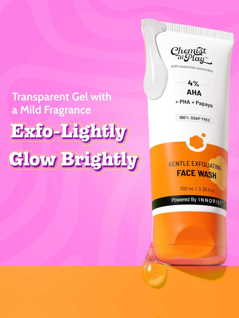 Chemist at Play Gentle Exfoliating Face Wash is a well-balanced daily cleanser that uses 4% AHA + PHA with papaya to gently smooth and brighten skin. The texture is light, lathers well, and cleans without leaving a tight or dry feel. It’s soap-free and includes ceramides, so it supports the skin barrier while exfoliating. A solid choice for dull or uneven skin, especially for beginners to mild chemical exfoliation, and it’s powered by Innovist
