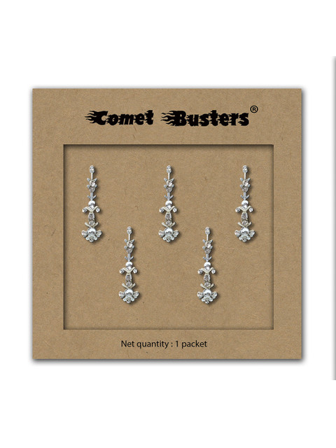 5 Pcs Embellished Reusable Designer Bindis – Silver-Toned