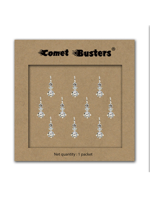 Comet Busters Silver-Toned Embellished Traditional Designer Bindis – 10 Pcs