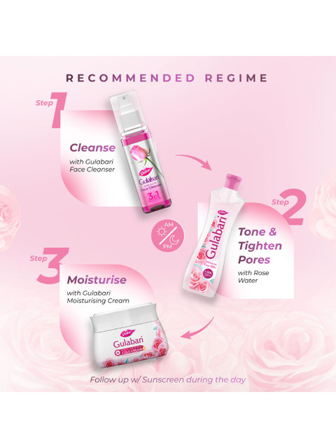 | How-to-Apply | Dab it directly on the face with a cotton pad or mix it in your face pack/ubtan.Rinse your face with water.Get glowing &, radiant rose like skin.Follow up with Dabur Gulabari Moisturising Cream for best results. |
