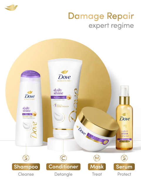 | Special Features | SHINIER, HEALTHY LOOKING HAIR: Dove Daily Shine Conditioner with Nutritive serum detangle hair, giving them an unbelievable shineDETANGLES HAIR &, CONTROLS FRIZZ: Dove conditioners nourish and detangle frizzy hair, making them so smooth that the comb slides right throughGENTLE ON DAMAGED, DULL HAIR: The caring ingredients of Dove conditioner penetrates the hair fibre and makes hair soft, giving it an unbelievable shineDOES NOT WEIGH HAIR DOWN: It's Nutritive Serum formula nourishes tangled and dull hair without weighing it downFor best results, apply on hair from ears to tips where hair tangles easily and looks dullerSUITABLE FOR DAILY USE: It has no parabens, no dyes, no added sulphates, making it suitable for daily useIt is also suitable for coloured or chemically treated hairFOR BEST RESULTS USE EVERYTIME AFTER SHAMPOO: Shampoo cleans scalp and repairs hair while conditioner deeply nourishes hairUse Dove conditioner everytime after shampoo for detangled, smooth, frizz-protected hair that breaks less while combing |