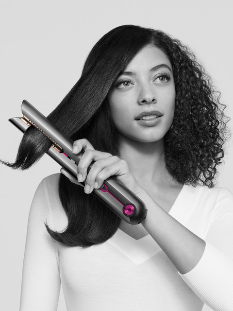 The Dyson Corrale hair straightener is the only straightener with flexing copper plates that flex around your hair to gather it. This extra control allows you to create the same style but with less heat – and half the damage. It also means enhanced styling, for reduced frizz and fewer flyaways.Â