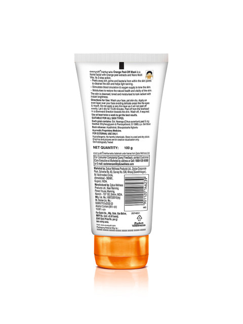 | Special Features | Natural Orange Peel extractHelps fight to tanCleanses, Tones and Moisturises the skinSuitable for all skin typesParaben freeEveryuth Naturals Orange Peel-Off is a home facial, empowered with the power of Orange Peel extracts to provide a 3 step action.It peels away dirt, grime, and bacteria from within the skin pores to cleanse the skin and helps fight tanning.It stimulates blood circulation &, oxygen supply to tone the skin.Lastly moisturizes to restore the natural health and vitality of the skin. |