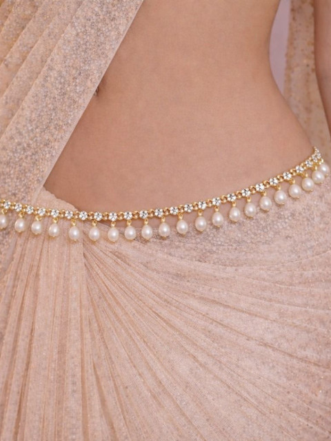 Gold-toned and White Pearls Studded Waist Chain with S-Hook closure