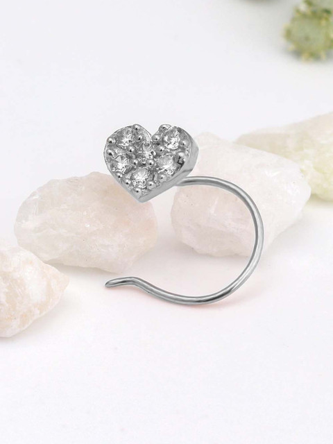 925 Sterling silver and rhodium plated CZ-studded heart shape clip-on nosepin
