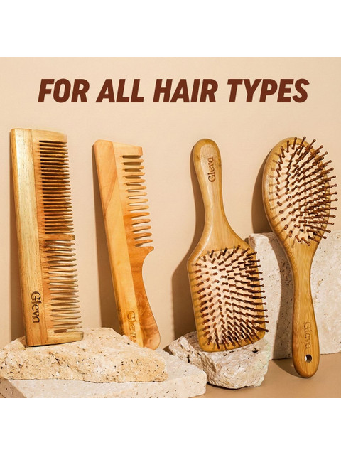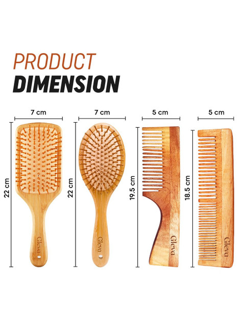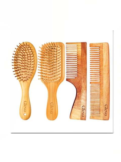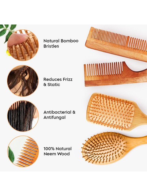 Set of 4 Neem & Bamboo Wooden Detangling Brush & Combs – Brown