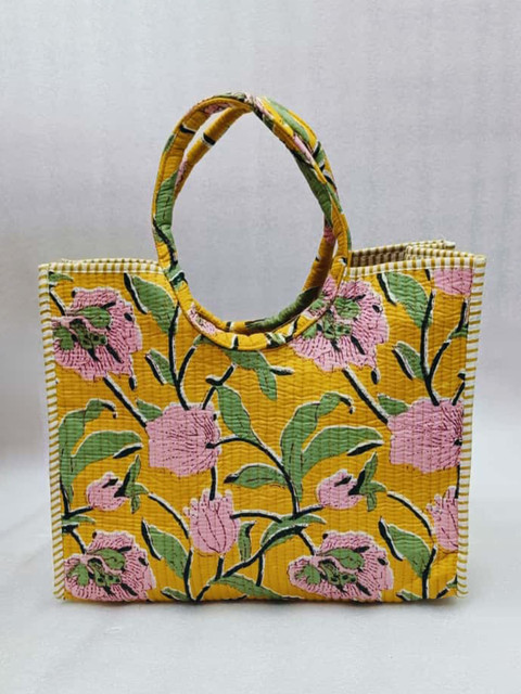 Gulaab Jaipur Floral Printed Cotton Quilted Structured Tote Bag