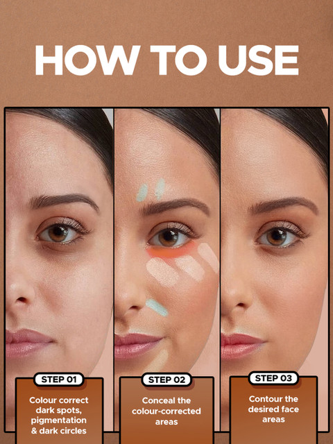 The palette also includes a corrector shade that works well for warm-toned under-eye dark circles and blends easily without looking heavy. Coverage is good and buildableyou can use it just as a concealer or mix a small amount with moisturiser to create a light base for everyday looks.