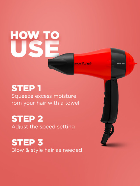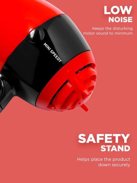 | Special Features | Lightweight DC Motor: The mini Speedy hair dryer features a lightweight DC motor that provides powerful airflow for quick and efficient drying, without weighing you down.Speed Settings: Choose between two speed settings to customize your drying experience, whether you need a gentle breeze or a more powerful airflow for faster drying.Foldable Handle: The convenient foldable handle allows for easy storage and portability, making it an ideal choice for travel or on-the-go styling.Professional Power Cord: With a generous 1.8-meter professional power cord, you'll have ample room to move around while drying your hair, without being restricted by cord length.Auto Shutoff Feature: Safety is a priority with the mini Speedy hair dryer. It is equipped with an auto shutoff feature that automatically turns off the dryer after a certain period of inactivity, providing peace of mind.Nozzle Attachment: Included with the hair dryer is a nozzle attachment, which allows for precise airflow control, enabling targeted styling and more focused drying.Removable Filter: The hair dryer's removable filter makes cleaning and maintenance a breeze. Simply detach the filter, remove any trapped debris or lint, and reattach it for optimal performance.Hanging Loop: For convenient storage, the mini Speedy hair dryer comes with a hanging loop. Hang it up on a hook or loop it around a towel rail to keep it easily accessible and organized.Experience quick and efficient drying with its 1000W power and 2 speed settings. |