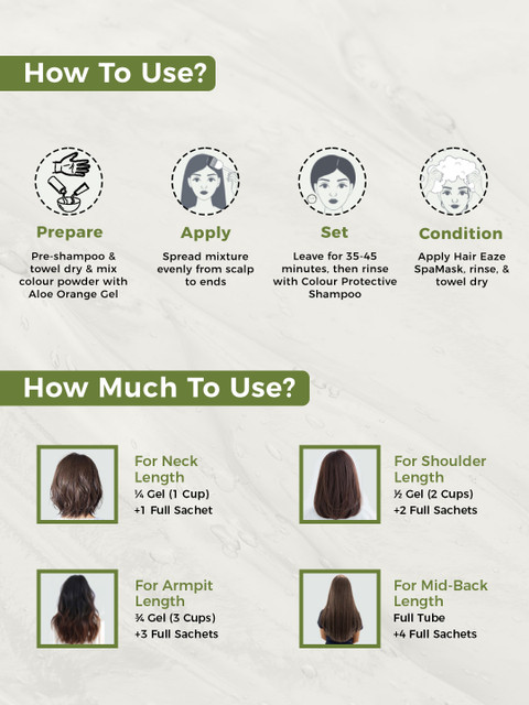 Take powder sachet and gel tube according to your usageMix them in a plastic bowl or glass bowl, then apply to your hair with the help of application brush with comb and then leave it for 30-35 minutesAfter that wash it off with the colour protective shampooing conditioner and style your hair accordingly