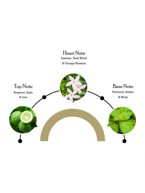 Top Notes: Apple, Bergamot and LimeHeart Notes: Orange Blossom and Teak WoodBase Notes: Vanilla, Patchouli and Musk