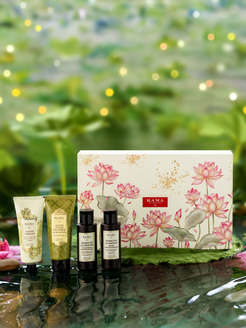 Neem Tulsi Tea Tree Body Scrub – 50 gKokum Almond Cleansing Shower Oil – 50 mlKokum Almond Body Moisturiser – 50 mlHand Cream – 60 g