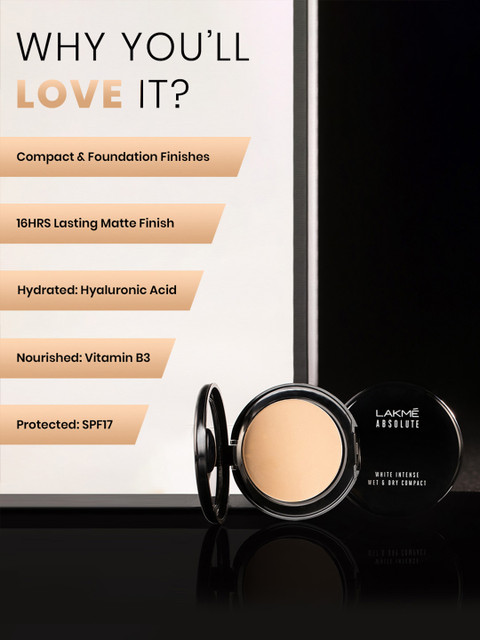 Lakmé compact is ightweight, pressed compact powders designed to give a matte, even finish and help set makeup or sunscreen. This is for daily use, oil control, and portability. The formula is talc‑based, and it is bundled with a mirror and puff for on‑the‑go application.