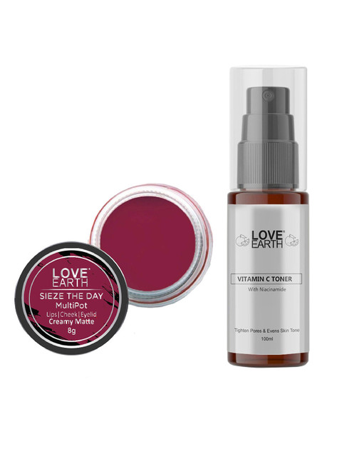 LOVE EARTH Multipot Lip-Cheek-Eyelid Tint 8g & Vitamin C Toner 100ml