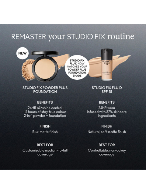 Get into the #1 pressed powder foundation with a formula made for every shade of you. A one-step powder and foundation that gives skin an ultra-matte finish with medium-to-full buildable coverage that lasts for 12 hours, while controlling shine. This one-step powder and foundation gives skin a smooth and even ultra-matte finish with medium-to-full buildable coverage – with a velvety texture that allows the skin to breathe.Long-wearing, colour-true, non-caking, non-streaking, non-settling – all for 12 hours.With a blur-matte finish and 24-hour oil control – our iconic Studio Fix Powder Plus Foundation gets fine-tuned for you.The lightweight, blendable formula features rose, sugar kelp, and red algae extracts.The silky talc-free texture smooths and evens skin tone and delivers customizable medium-to-full coverage while being sweat- and humidity-resistant.This breathable pressed-powder foundation is available for all and does not look grey on any skin tone – all housed in refillable packaging.Immediately reduces the appearance of poresControls oil and shine, 8 hoursNon-dryingFor all skin types, especially oily skinStay-true colour, 12 hoursNon-acnegenicNon-streaking/caking/settling, 12 hoursSweat- and humidity-resistantPhoto-friendly FREE OF:- PhthalatesParabensFormaldehyde DonorsSodium Lauryl Sulfate A.K.A SLSSodium Laurethsulfate A.K.A SLESTriclosanD&C Yellow No. 11OxybenzoneSynthetic Microbeads 5mm Or Smaller