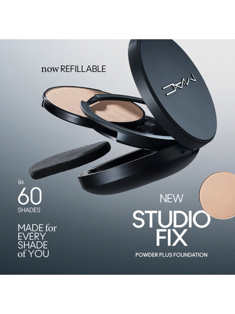 Get into the #1 pressed powder foundation with a formula made for every shade of you. A one-step powder and foundation that gives skin an ultra-matte finish with medium-to-full buildable coverage that lasts for 12 hours, while controlling shine. This one-step powder and foundation gives skin a smooth and even ultra-matte finish with medium-to-full buildable coverage – with a velvety texture that allows the skin to breathe.Long-wearing, colour-true, non-caking, non-streaking, non-settling – all for 12 hours.With a blur-matte finish and 24-hour oil control – our iconic Studio Fix Powder Plus Foundation gets fine-tuned for you.The lightweight, blendable formula features rose, sugar kelp, and red algae extracts.The silky talc-free texture smooths and evens skin tone and delivers customizable medium-to-full coverage while being sweat- and humidity-resistant.This breathable pressed-powder foundation is available for all and does not look grey on any skin tone – all housed in refillable packaging.Immediately reduces the appearance of poresControls oil and shine, 8 hoursNon-dryingFor all skin types, especially oily skinStay-true colour, 12 hoursNon-acnegenicNon-streaking/caking/settling, 12 hoursSweat- and humidity-resistantPhoto-friendly FREE OF:- PhthalatesParabensFormaldehyde DonorsSodium Lauryl Sulfate A.K.A SLSSodium Laurethsulfate A.K.A SLESTriclosanD&C Yellow No. 11OxybenzoneSynthetic Microbeads 5mm Or Smaller