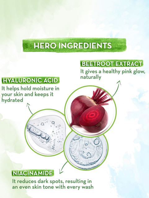 The Mamaearth Beetroot Gentle Face Wash is a natural-inspired daily cleanser designed to gently cleanse, hydrate, and brighten the skin. It’s soap-free and formulated with plant-based extracts aimed at giving your face a healthy “pink glow.”