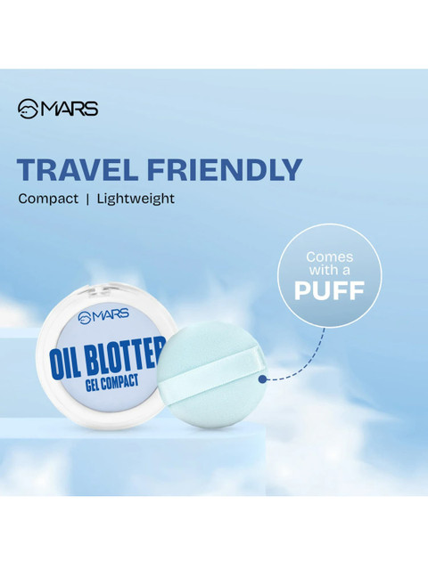 | Special Features | Your ultimate solution for flawless, shine-free skin, the MARS Setter and Blotter Gel Compact works as both a compact and a primer.This versatile product offers long-lasting oil control with a smooth, matte finish, while minimizing pores for a poreless look. Ideal for oily skin, it keeps your complexion fresh and shine-free all day.For quick touch-ups, this dual-purpose gel compact sets makeup flawlessly and blots away shine, ensuring a smooth, flawless complexion.Powerful Oil Control: Specially formulated to manage excess oil, keeping your skin matte and shine-free all day.Pore-Minimizing Effect: Blurs and reduces the appearance of pores, delivering a smooth, flawless complexion.Long-Lasting Matte Finish: Provides a natural matte look that keeps makeup fresh for hours, perfect for long-lasting wear. Its mattifying formula controls excess oil, providing a shine-free, poreless matte finish that lasts all day.Ideal for Oily Skin: Specially suitable for oily skin, ensuring comfort and effectiveness.Cruelty FreeVegetarianEasy to use |