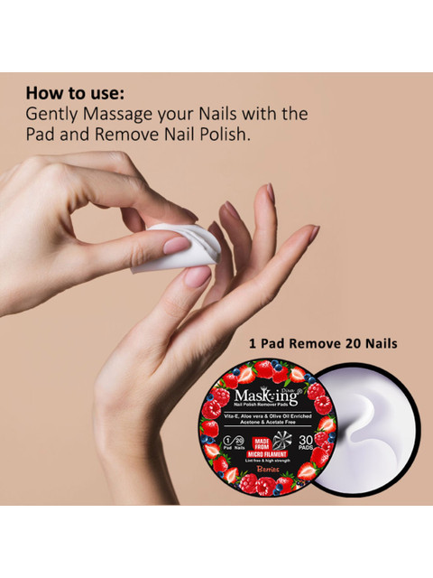- Berries Nail Polish Remover Pads with Vita E, Aloe & Olive – 30 PadsÂ