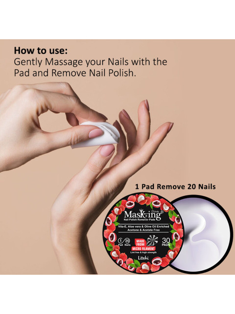 - Litchi Nail Polish Remover Pads with Vita E, Aloe & Olive – 30 PadsÂ