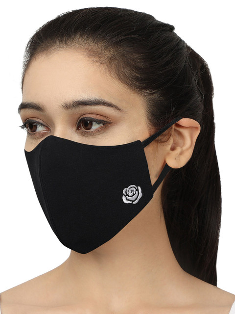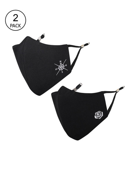 Pack of 2 black solid 4-ply reusable outdoor cloth face mask