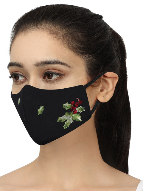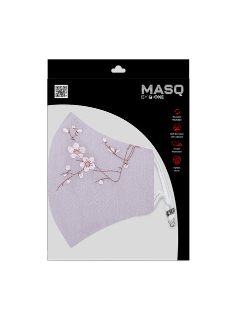 MASQ Pack of 3 Embroidered 4-Ply Reusable Pure Cotton Cloth Masks