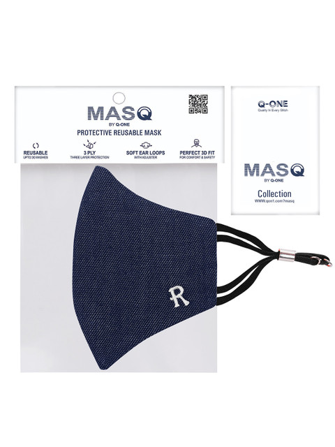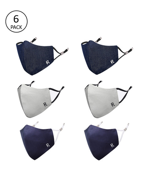 Pack of 6 Navy blue and Grey solid 4 ply outdoor pure cotton mask with elasticated fastening
