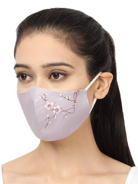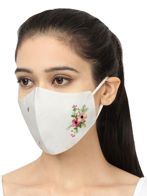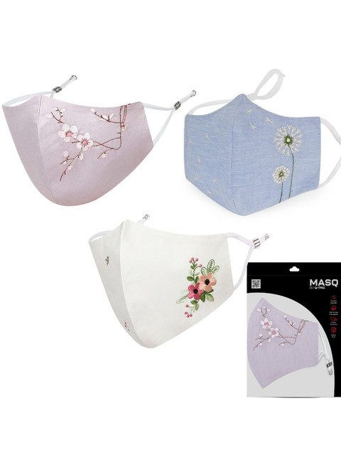 Pack of 3 white, blueembroidered 4-ply reusable Protective face Mask