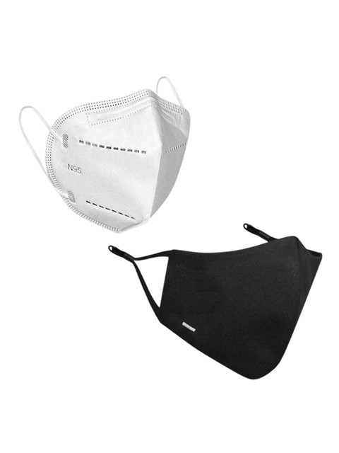 Pack of 2 black and white solid 4 layered protection mask