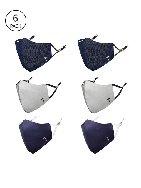 Pack of 6 Navy blue and Grey Solid 4 ply outdoor pure cotton mask with elasticated fastening