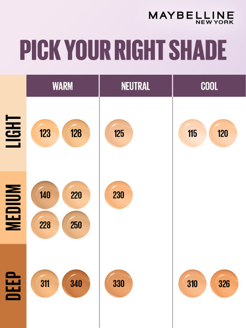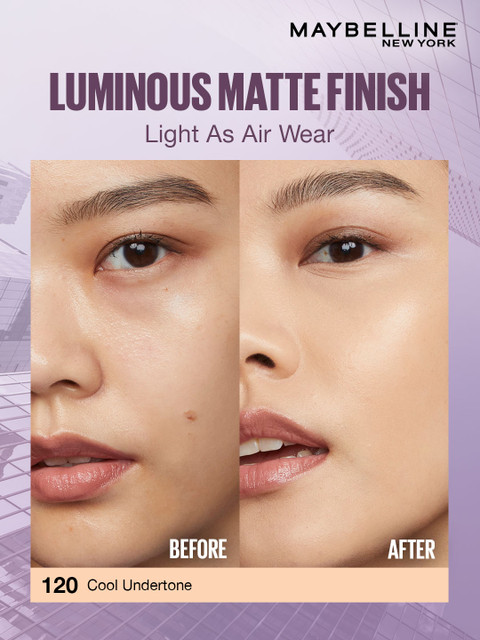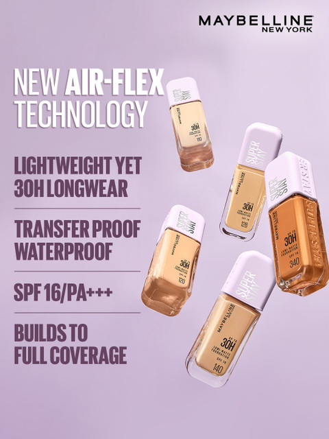 Light as air foundation: Meet super stay lumi matte foundation. Longwear now goes light-as-air, thanks to our airiest foundation that defies it all.30 hour long wear: Get a flawless base that stays for up to 30 hours with super stay foundation. This foundation is transfer proof &amp, sweat proof so no need for touch ups.Buildable to full coverage: Super stay lumi mattes new lightwear technology brings a uniquely weightless feel to longwear foundation. It offers medium to full buildable coverage so pick your coverage.No caking and no patchiness.gives a lumi matte look: Achieve a flawless matte finish with diffused glow with this innovative foundation.Suitable for all skin types: The maybelline super stay lumi matte liquid foundation is vegan &amp, dermatologically tested.Ideal for all skin types: It is also non comedogenic &amp, allergy tested.