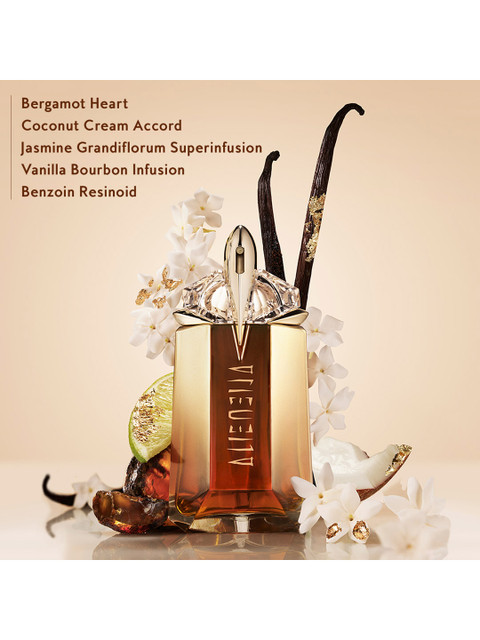 If the original Alien Goddess is a day at the beach, the Intense EDP is the sunset party that follows. It opens with a creamy coconut and bright bergamot, but quickly settles into a rich, ambery heart. The Jasmine Tea note gives it a sophisticated edge that the original lacked, while the Bourbon Vanilla and Benzoin in the base make it incredibly cozy and “expensive” smelling.