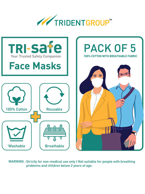 1 review for MYTRIDENT Unisex Pack Of 5 Grey Solid 2-Ply Cotton Reusable Cloth Masks
