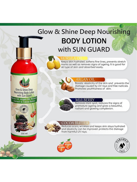 Get glowing, youthful and smooth skin with the goodness of organic extracts of NatureNova Herbals Glow and Shine Deep Nourishing Body Lotion that protects the skin from getting damaged caused by UV-B rays from sun, nourishes skin well, softens fine lines, prevents stretch marks as well as removes signs of aging and promotes youthful looking skin.It also forms a protective layer over the skin to hold moisture to help skin hydrated, so that elasticity can be retained.Makes the skin moisturized, soft and healthy. Keeps the skin wrinkle and blemish free. Reduces stretch marks, tightens and brightens the skin.Reduces suntan. It is free from paraben and other harmful chemicals.Has a pleasant fragrance and suitable for both men and women.It is enriched with vitamins C and E that makes skin healthy and bright.Get glowing, healthy, shiny, clear and supple skin with an organic touch of NatureNova Herbals Body Scrub that aids to remove dark spots, improves texture of skin, increases elasticity and brightens skin by exfoliating dead skin cells.It protects the skin from dryness and nourishes and softens the skin as well as prevents stretch marks.