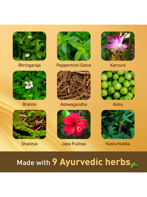 Each 100 ml contains: Extracts of Cyperus rotundus – RZ. 200mg, Hibiscus Rosa- Sinensis – FL. 250mg, Eclipta Alba -WH.PL. 50mg, Parmelia Perlata – Thallus. 200mg, Withania Aomnifera – RT. 1 00mg, Emblica Officinalis – DR.FR. 1000mg, Curcuma Zedoaria – RZ. 200mg, Hibiscus Abelmoschus – SD. 200mg, Bacopa Monnieri – WH.PL. 16mg, Acacia Concinna – PD. 16mg, Pavonia odorata – RT. 50mg &amp, Centella Asiatica – WH.PL. 100mg, Mentha sp. -Satva 2020mg, Cinnamomum Camphora – Satva 500mg, Mentha Arvensis Leaf Oil – 500mg, Prunus Amygdalus Dulcis (Sweet almond) Oil – 200mg, Base q.s.