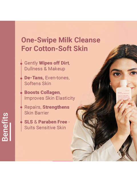 Cruelty freeParaben free Silicone free Dermatologically testedGently wipes off dirt, dullness &amp, makeupDe-Tans, even-tones, softens skinBoosts collagen, improves ckinElasticity repairs, strengthens skin barrier