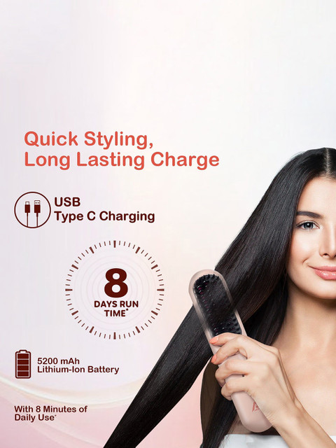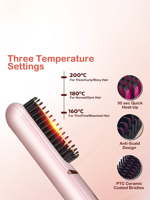 Cordless Hair Straightener Brush – HSB-04 – Pink