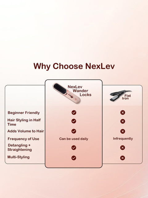 NexLev Cordless Hair Straightener Brush – HSB-04 – Pink