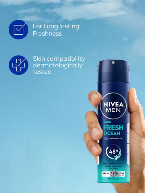 [Nivea Men Fresh Active Deodorant Spray]() is a popular choice for men seeking a refreshing and long-lasting fragrance. Infused with ocean extracts, it offers a breezy, minty scent that many users find invigorating. The deodorant is designed to provide up to 48 hours of odor protection, making it suitable for daily use. Its skin-friendly formula is dermatologically approved and contains 0% aluminum, catering to those with sensitive skin. While many users appreciate its fresh scent and effectiveness, some have noted that the fragrance may not last as long as advertised. Overall, it’s a reliable and affordable option for maintaining freshness throughout the day.